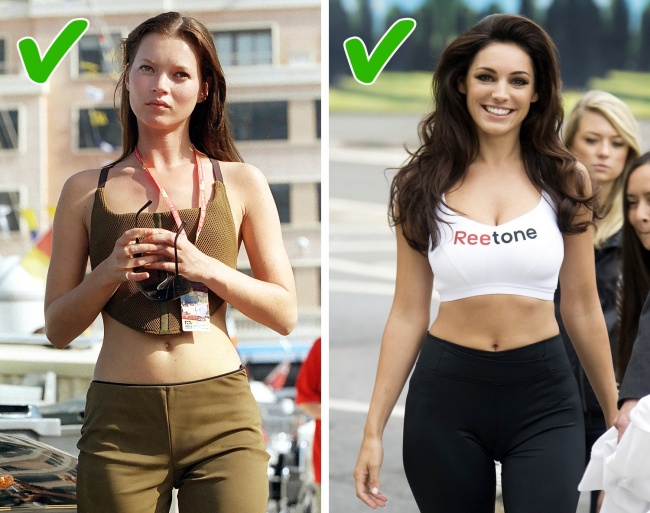 Моделі Кейт Мосс і Келлі Брук, актриси Мерилін Монро і Джесіка Альба, незважаючи на абсолютно різні типи фігур, на думку фахівців, мають ідеальне співвідношення талії і стегон.